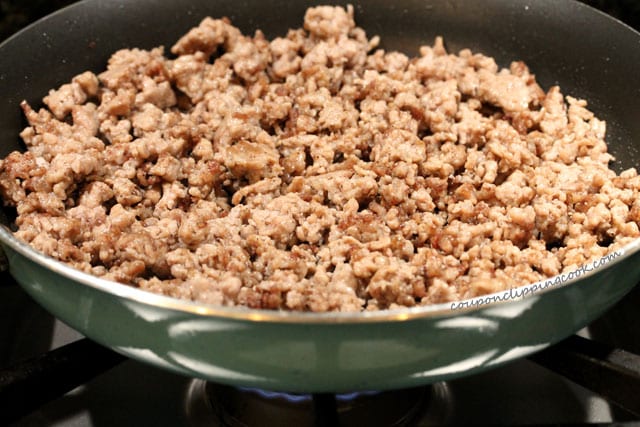 - Browning the Ground Pork – Continue to stir the ground pork as it cooks.